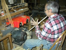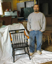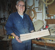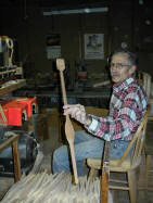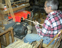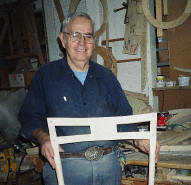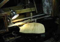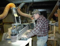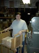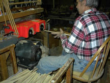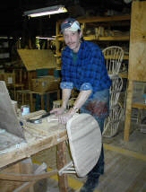 | We started with the old Nichols & Stone chair my father got me in 1955. It was bigger than I was. Note the ridge along the seat front. | After machine planing, we use delicate band sanders to produce those elegant curves. |