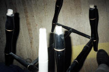 | Why tapered? The untapered Nichols & Stone leg has a "shelf" that can't fit snugly. You can see it on the dowel on the left. |