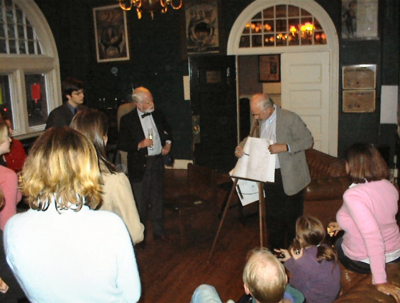 ![]() Laurence McKinney '66 greets the Hasty Pudding crew |